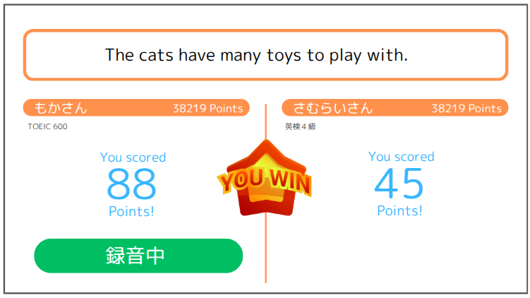 例文を読むときも情景をイメージしながら録音して下さい。文章も実際に使う場面を想像して文章を作成してください。最初は点数などを気にする必要はありません。どんどん進めましょう。